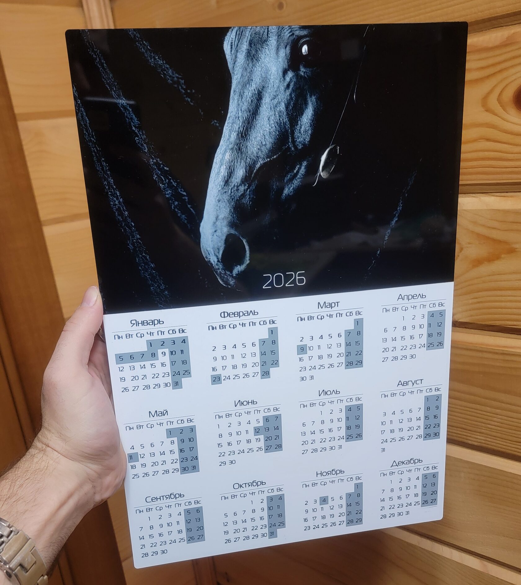 В 2 размерах, можно с конём или со своим фото или картинкой